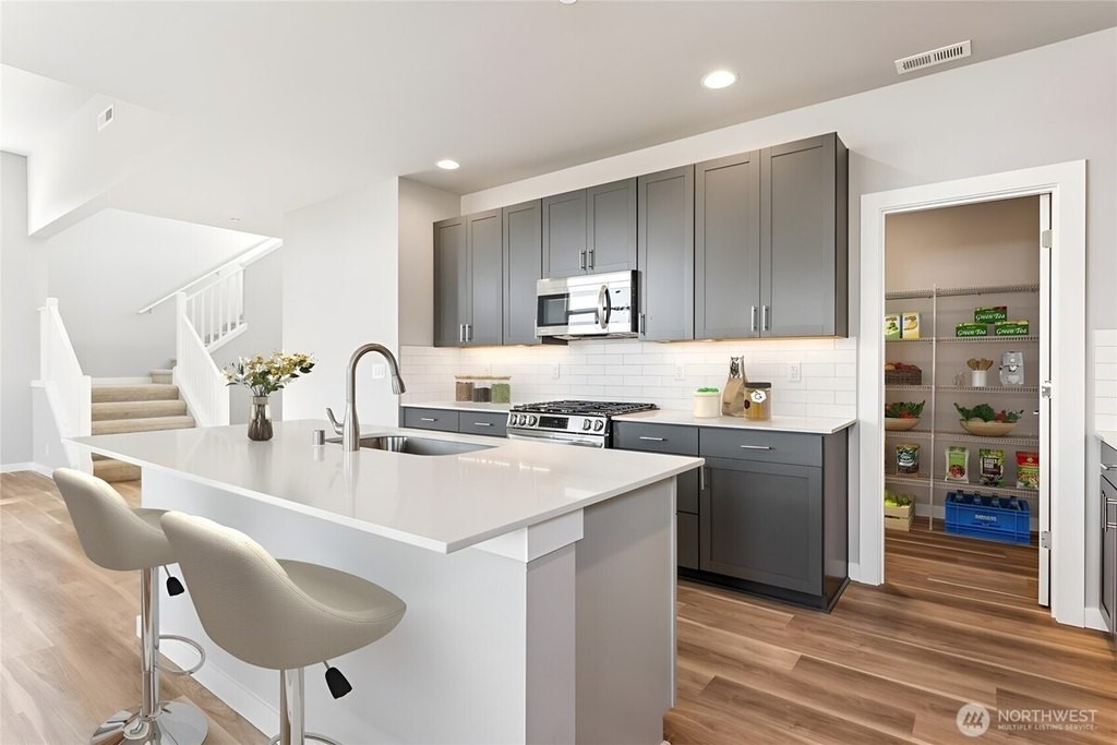 Welcome to Conner Homes at Uplands - South Hill's newest master-planned community. This MOVE-IN READY Robin plan features a bright entry, main floor bed with 3/4 bath & a 12 ft ceilings in great room w/ stunning full-height tile linear electric fireplace. The kitchen blends luxury & function offering a dual-entry walk-in pantry, quartz counters, under cabinet lighting & 5 burner gas range. Upstairs offers 4 spacious bedrooms, a large loft & a luxe primary suite w/freestanding soaking tub & walk-in pantry. Unwind under the covered patio w/BBQ stub in your fully fenced, professionally landscaped yard. Newly completed Clubhouse features gym, multiple pools, hot tub, event space & more - all included with your HOA dues. Enjoy all the uplands has to offer including multiple playgrounds and over 24 acres of walking trails not to mention the unbeatable Mt Rainier views. Photos are not of actual home, colors & finishes may vary. Start the year strong with $30,000 incentive plus an appliance package or Interest rate as low as 3.99% with Special Financing w/trusted Lender CMG on move-in ready homes, must close by 2/27/26. Limited-time New Year promotion, terms & conditions apply.